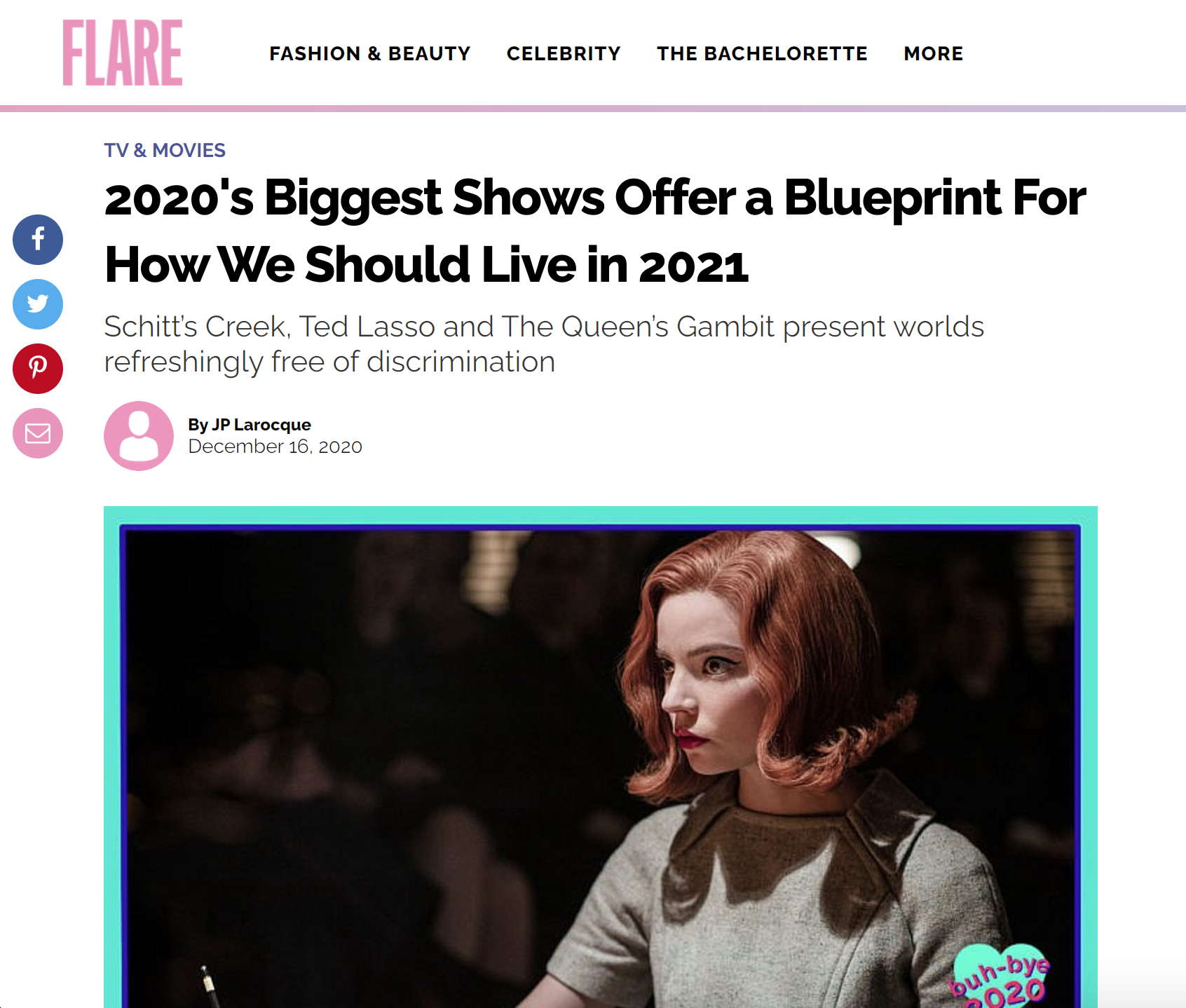 I wrote a fun little piece for Flare, rounding up 2020’s biggest television hits and discussing how each grapples with identity and representation — in a year when both subjects have been at the forefront of everyone’s mind.